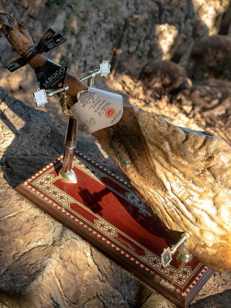 Un jamón excepcional con una curación de hasta seis años y un seguimiento minucioso de todas las fases que abarcan desde el nacimiento del animal hasta el punto final. Se consigue una pieza única y exclusiva por encima en calidad a los mejores ibéricos de bellota. Esta variedad “manchado de jabugo” se caracteriza por la originalidad y escasez de la especie y por el entorno perfecto donde vive el animal así como por su cuidada y específica alimentación. Un manjar para los sentidos y una experiencia única saborear esta joya de la naturaleza.